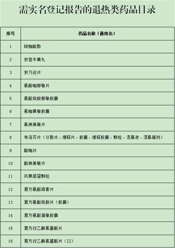根据规定,8月26日起,各零售药店在销售目录内的退热类药品时必须实施实名登记报告。网络销售则实行“网订店取”模式,确保对购药者发热状况及“疫情线索”人员信息及时准确报告。