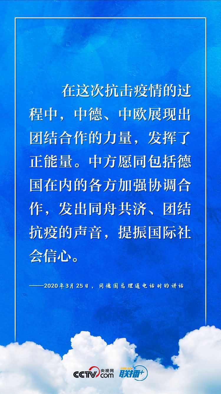 新冠肺炎疫情暴发以来,中国和德国、欧盟相互支持、相互帮助。习近平主席多次与德欧领导人开展“云外交”,阐明加强合作的重要性。