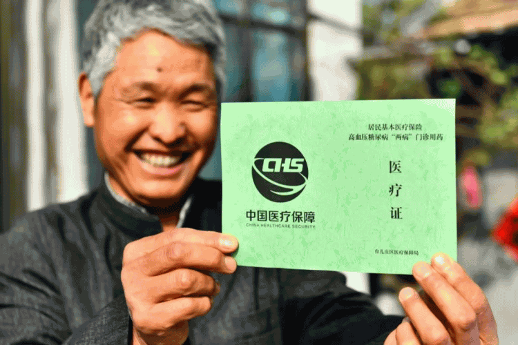 2020年10月29日,在山东省枣庄市台儿庄区涧头集镇旺庄村,村民王明洋展示自己的高血压糖尿病“两病”门诊用药医疗证。