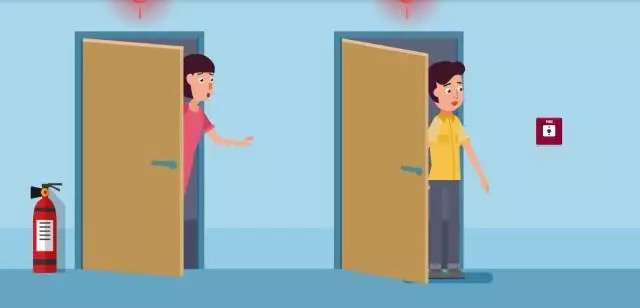 有条件的要按下火灾报警按纽,尽可能的警示他人。