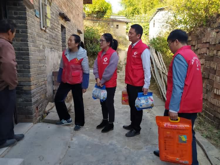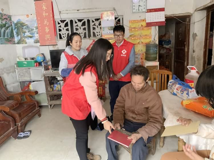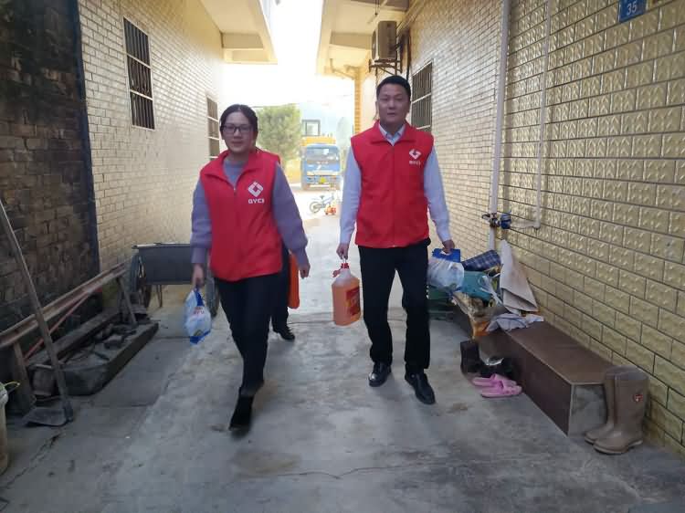 当天下午,在社岗村委工作人员的陪同下,球盟会官网集团公司的志愿者来到社岗村委会社三村,慰问了结对帮扶对象陈先生。志愿者们为陈先生精心准备了油、米、面、法律书籍等爱心慰问品。