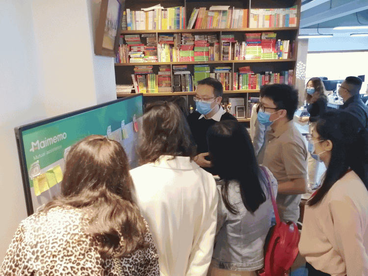 墨墨科技目前是一家主要开发英语背单词APP的科技公司,凭借过硬的业务水平、专业的产品开发技术,每年以高速的增长率占领市场,其团队协作精神、创新精神都是值得我们学习和借鉴的。在墨墨科技董事长岳校等人员的陪同下,我们参观了办公区域,这里设置了运动器材、休闲茶点区、留言板、团建留影等一系列贴心的小设施,鼓励员工面对紧张的工作也要松弛结合,多运动、多交流、多反馈。