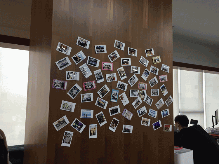 图为办公区域团建留影墙