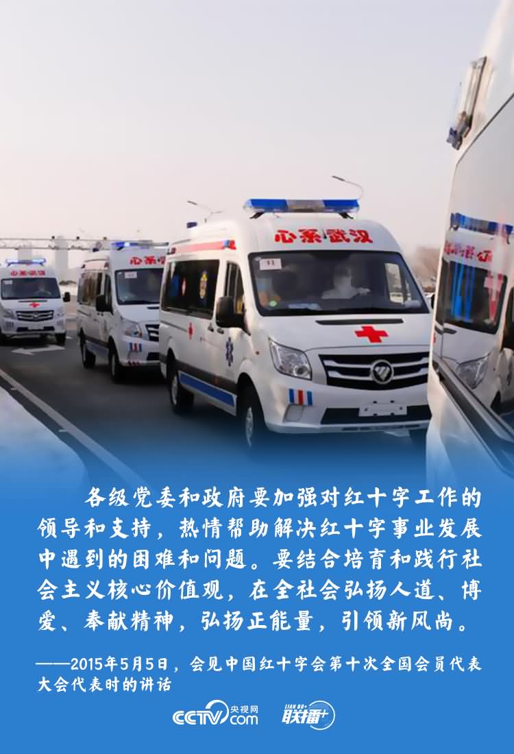 “我国红十字事业是中国特色社会主义事业的重要组成部分,中国红十字会是党和政府在人道领域联系群众的桥梁和纽带。党和国家高度重视这支力量。”