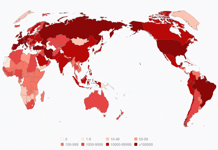 新冠病毒在世界地图上肆意扩散