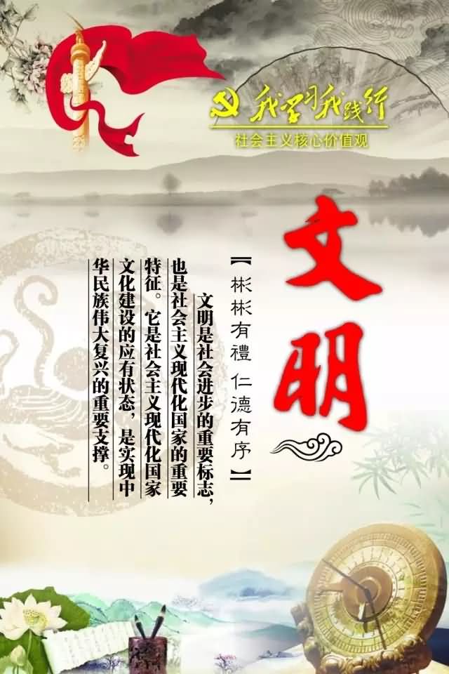 党的十八大报告指出:“文化软实力显著增强。社会主义核心价值体系深入人心,公民文明素质和社会文明程度明显提高。”可见,文明是国家软实力的重要组成部分。弘扬践行社会主义核心价值观,就要深刻理解“文明”的内涵,将其内化为每个人的核心价值理念。