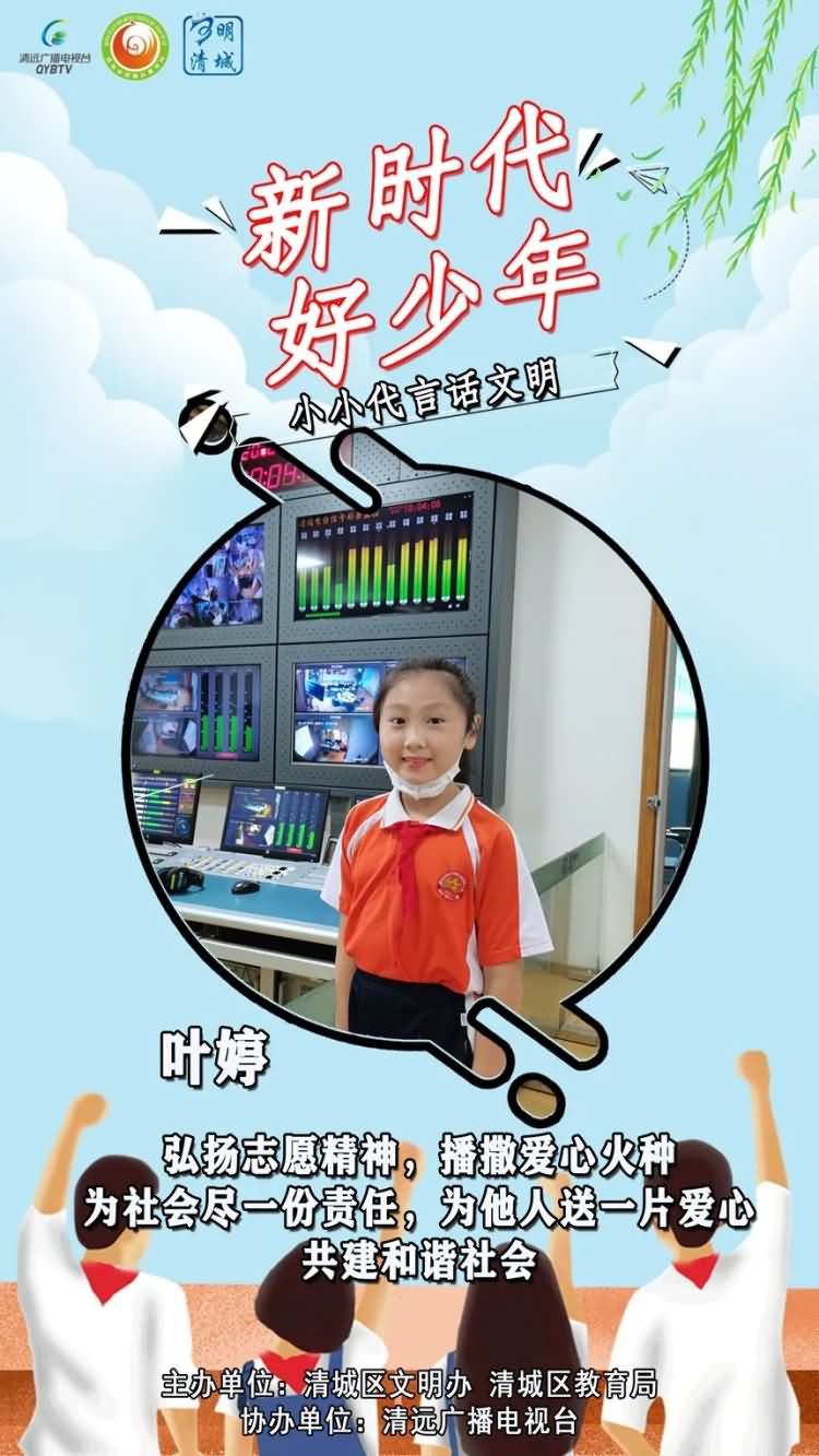 为深入贯彻落实党的十九大提出的“培养担当民族复兴大任的时代新人”要求,深化“扣好人生第一粒扣子”主题教育实践活动,积极引导未成年人培育和践行社会主义核心价值观,市文明办、市教育局、团市委、市妇联在全市联合开展了清远市“新时代好少年”学习宣传活动。采取各校广泛发动、自下而上层层推荐的方式,经严格审核评议,在全市评选出60名同学为2020年清远市“新时代好少年”。其中,清城区的孙伊橼、梁心悦、陈琳、杨兴港、梁浩程、谭芷柔、潘与暄、叶婷等8名同学榜上有名。