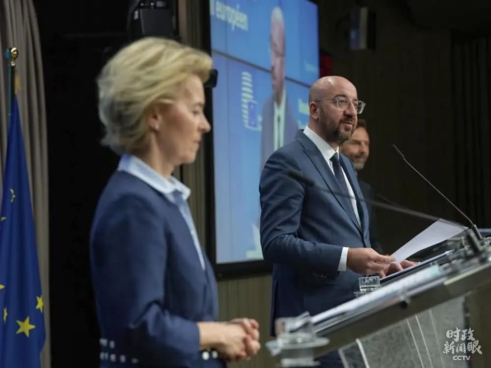 △4月23日,欧盟及其27个成员国举行了新冠肺炎疫情发生以来的第四次视频峰会。这是米歇尔和冯德莱恩在峰会后的新闻发布会现场。(来源于米歇尔社交媒体)