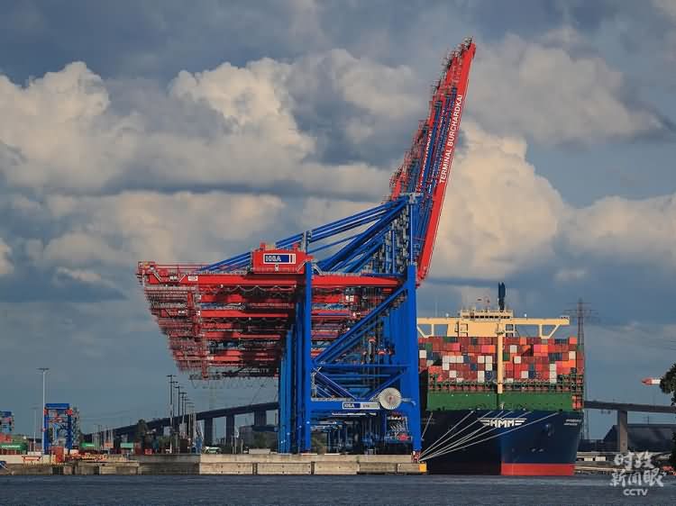 △6月7日,全球最大集装箱船“HMM阿尔赫西拉斯”号首次抵达德国汉堡港。