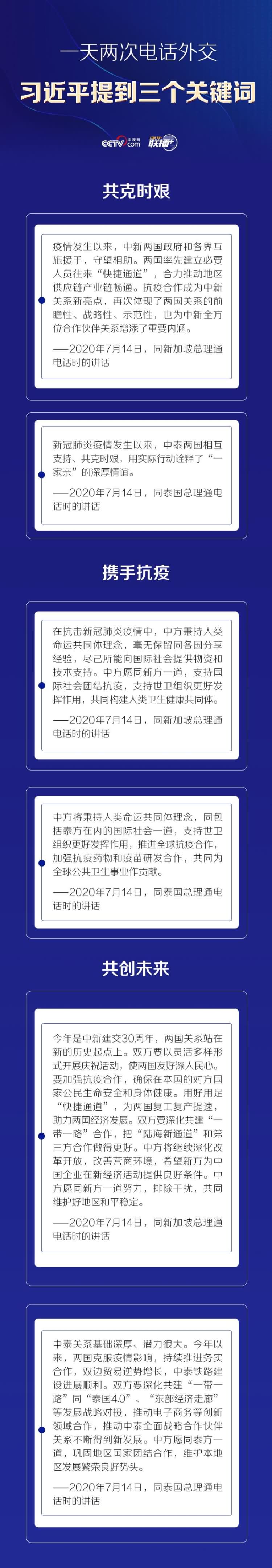 当前,新冠肺炎疫情仍在全球蔓延,多国面临外防输入、内防反弹的压力。7月14日,习近平主席分别同新加坡总理李显龙和泰国总理巴育通电话。