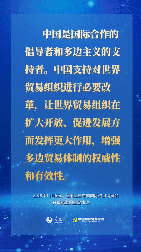 我们将坚定践行多边主义,维护以国际法为基础的国际秩序。中方愿同各国一道,秉持共商共建共享的全球治理观,坚定维护以联合国为核心的国际体系,坚定维护以世界贸易组织为核心的多边贸易体制。 对于经贸往来中出现的问题,各方都应该本着相互尊重的精神,通过平等对话协商,按照国际关系准则和多边贸易规则妥善处理,而不是动辄诉诸保护主义、单边主义。中国的这一立场,不仅是在维护各国的正当发展权利,也是在维护国际公平正义。