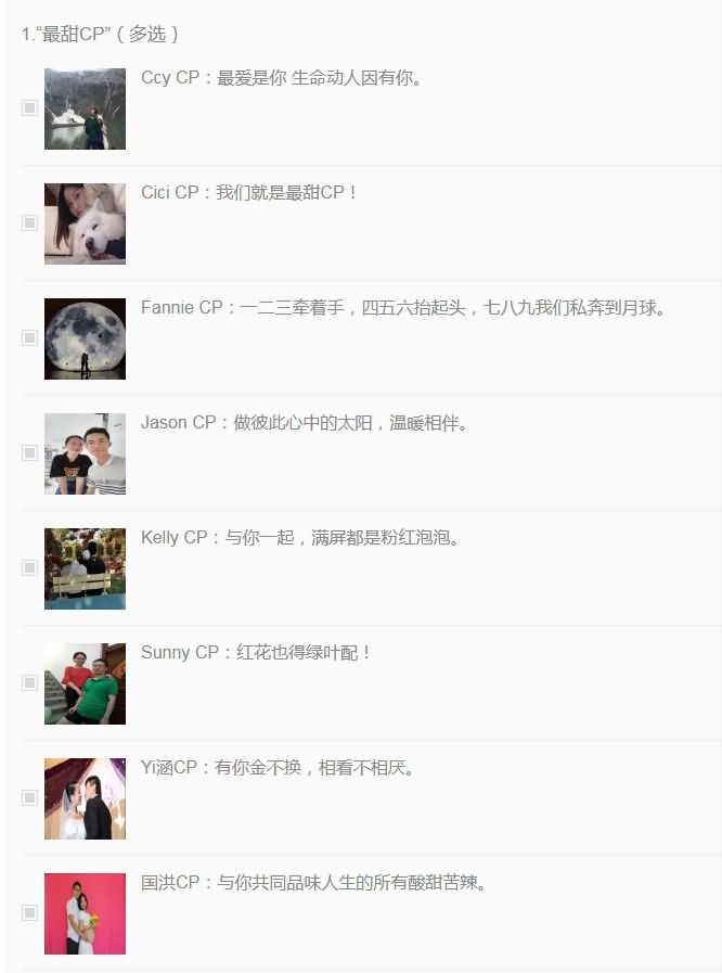 经典爱情传颂活动和“最甜CP”照评选活动页面