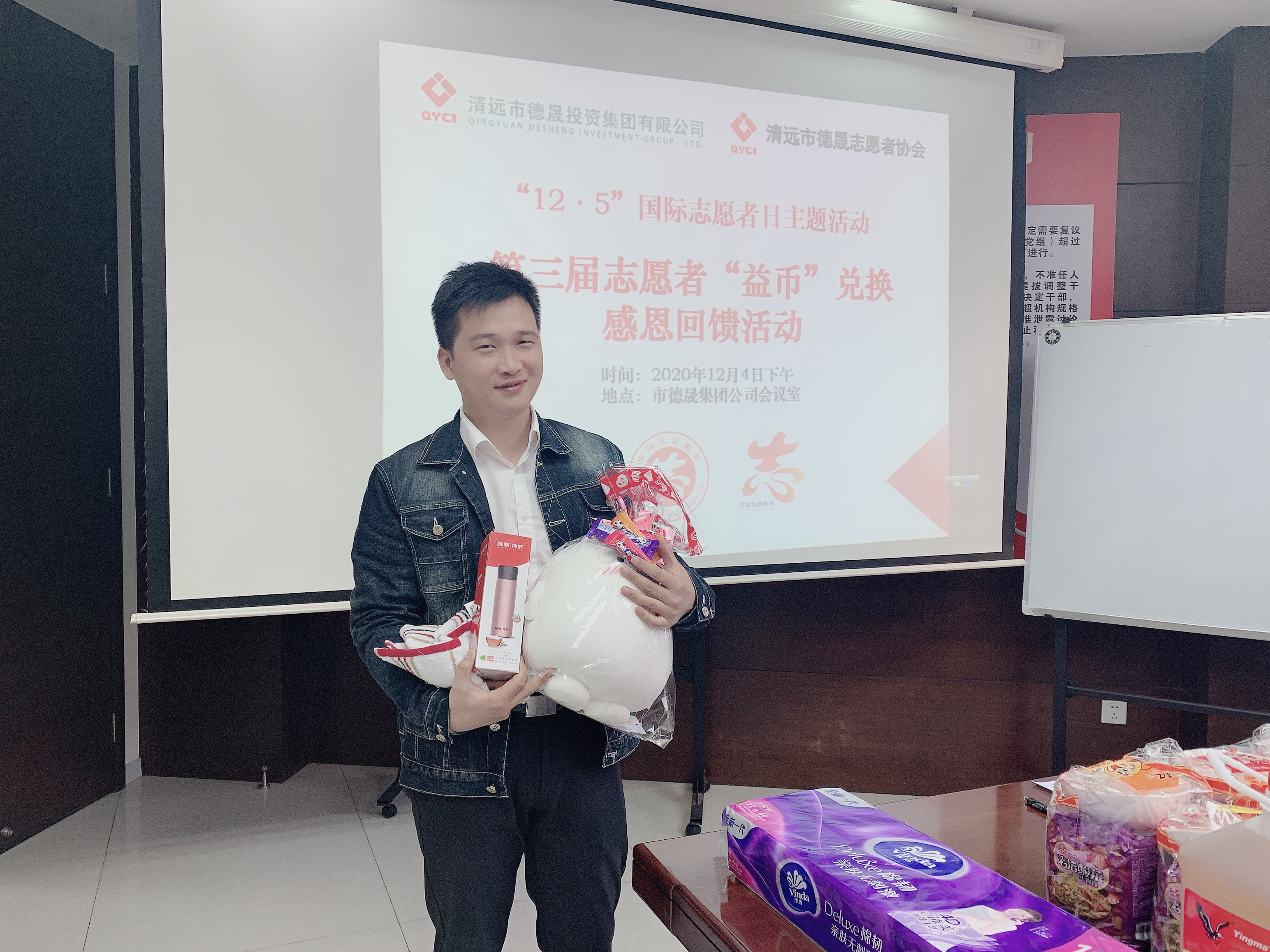 2020年12月5日是第35个国际志愿者日,为了感谢与回馈志愿者们一年以来的服务,激发志愿者的工作热情,市球盟会官网集团公司在12月4日下午在公司四楼会议室开展第三届志愿者“益币”兑换感恩回馈活动。