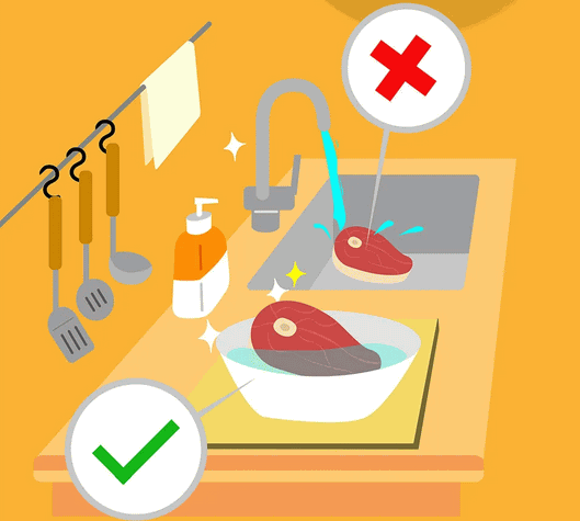 处理食材应生熟分开、煮熟煮透。