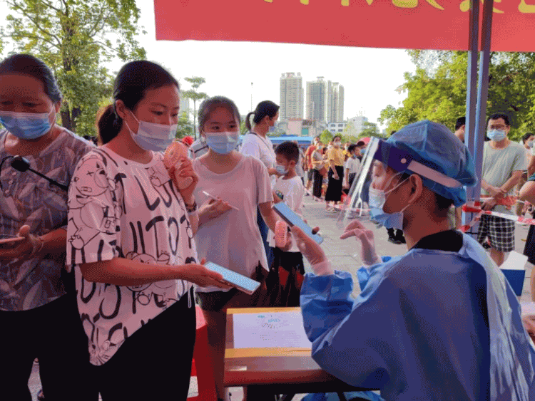 在简单接受社区工作人员的培训后,“她”快速掌握了粤核酸码录入登记流程,穿上防护服、防护手套、护目镜的“她”,立马从平日伏案工作的职工“变身”为抗疫女战士。“她”手指在手机屏幕上“飞舞”,熟练快速地为市民扫码以及确认个人信息。一句“提前打开你的粤核酸码”温馨提醒,一声“告诉我你的名字”不停重复,“她”嗓子早已喊到沙哑,防护服里也早已汗流浃背,甚至一个上午忙到都没时间喝一口水,但“她”仍依然没有停下手中的工作、离开自己的工作岗位。因为,“她”心里坚信,只要自己动作快一秒,市民就能少等一秒;只要自己多坚守一分,市民就能多理解一分。