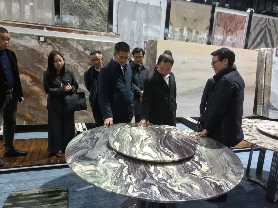 考察团首站抵达泉州市考察石材产业发展情况。在东星集团,考察团深入了解企业发展历程、产业布局及技术创新成果,到石材展厅、智能制造车间、石粉综合利用、石塑包装配套、智能仓储管理等项目参观,系统学习石材精深加工、石材交易模式、仓储物流体系等方面先进经验。在宇川石业公司,考察团到生产基地与专业市场实地考察,就板材加工、品牌建设等展开交流。在泉州市考察期间,考察团向拜访企业介绍了球盟会官网集团在矿产业务方面的发展成果,围绕在清远共建加工基地、引入技术合作、开发本地项目开展具体合作商谈。