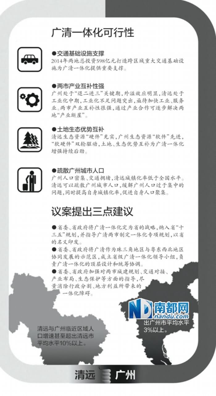 议案认为,广清两地城镇人口区域分布增长特征表明,越来越多的人愿在广州、清远两地相邻的区域居住、工作和生活。这种人口流向影响了资源的配置方向,使人口、资金、资源等生产要素在此聚集,为广清一体化提供动力。但随着两地融合不断发展深入,行政分割、地方利益等制约越来越突出,仅靠两地力量难以提升一体化水平。为此,迫切需要从省级层面帮助推进广清一体化。
