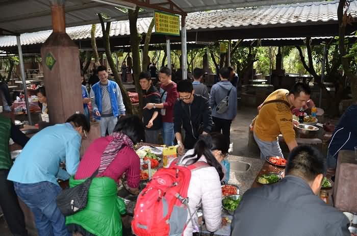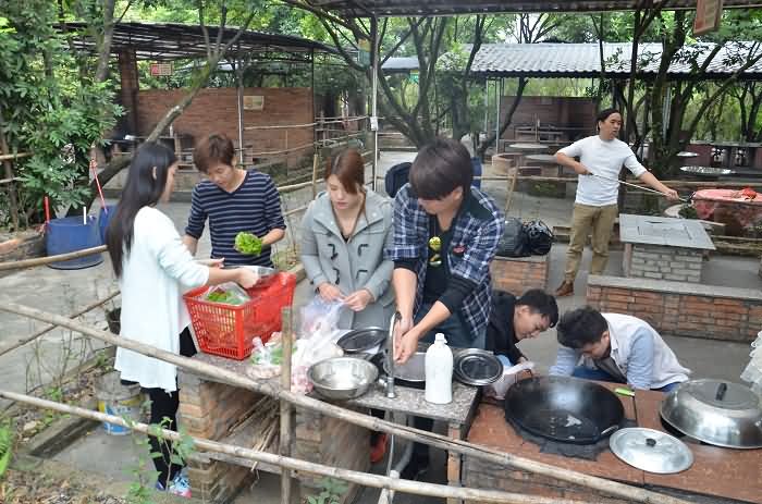 参加人员被分为12组,首先进行的是烹饪比赛,大家分工合作,各司其职,有条不紊地生火、洗菜、淘米、切菜,力争煮出美味佳肴。午饭后,各组队员积极发挥自己的才艺,纷纷组团开展踢毽子、唱歌等节目,活动现场气氛热烈,始终洋溢着一片欢声笑语,营造了积极奋发,团结向上的活动氛围。